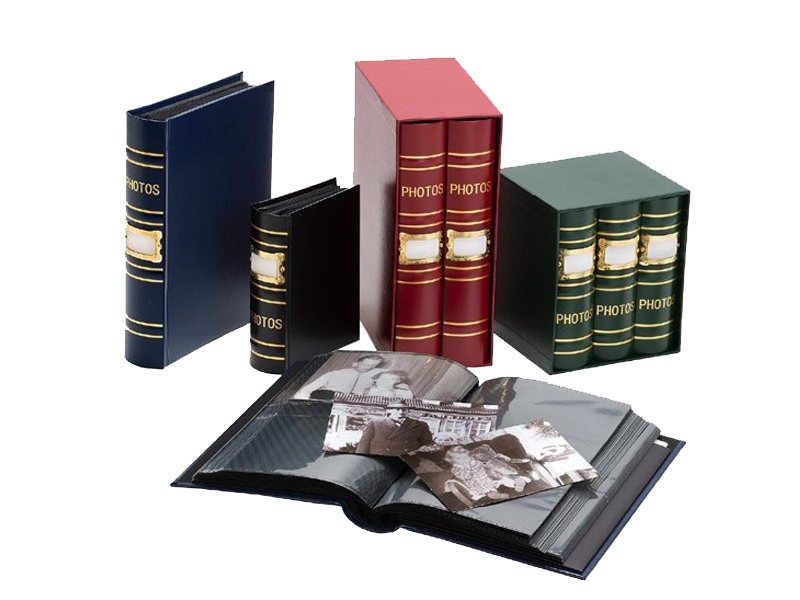 Kemény fedelû könyv alakú fotoalbum celofánnal ellátott fehér betétlapokkal, memo csíkkalBerakható képek száma: 300db 10*15 méretû fénykép