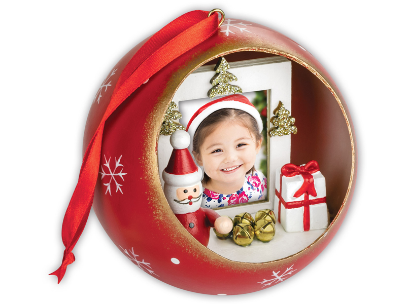 Gömb alakú karácsonyfadísz Gömb átmérõje: 10 cm Berakható kép mérete: 3,5*4,5cm