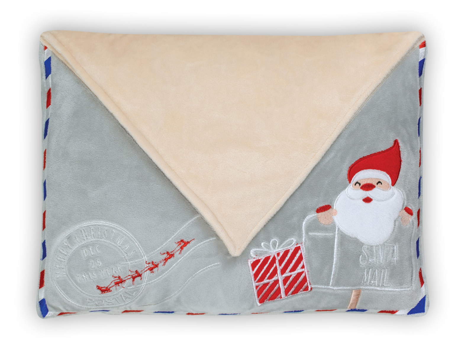 Plüss anyagból készült boríték alakú karácsonyi párna
