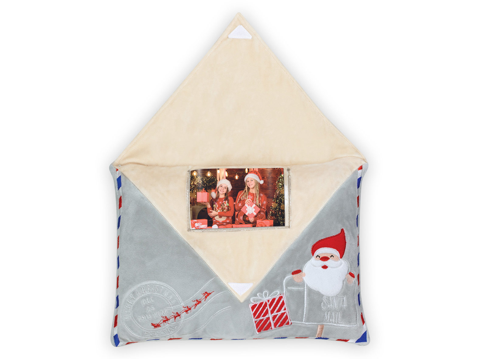 Plüss anyagból készült boríték alakú karácsonyi párna Párna mérete: 40*30 cm Berakható kép mérete: 10*15 cm