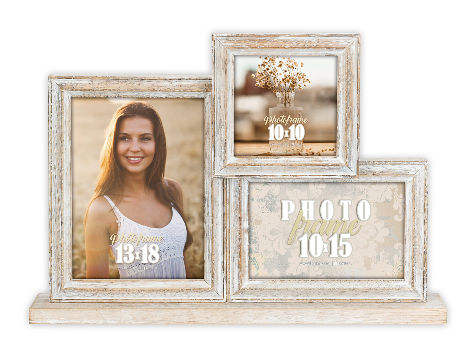 Fa vintage keret Mérete: 37*26,5 cm Berakható kép: 1db 10*10 cm, 1db 10*15 cm, 1db 13*18 cm Asztali kivitel