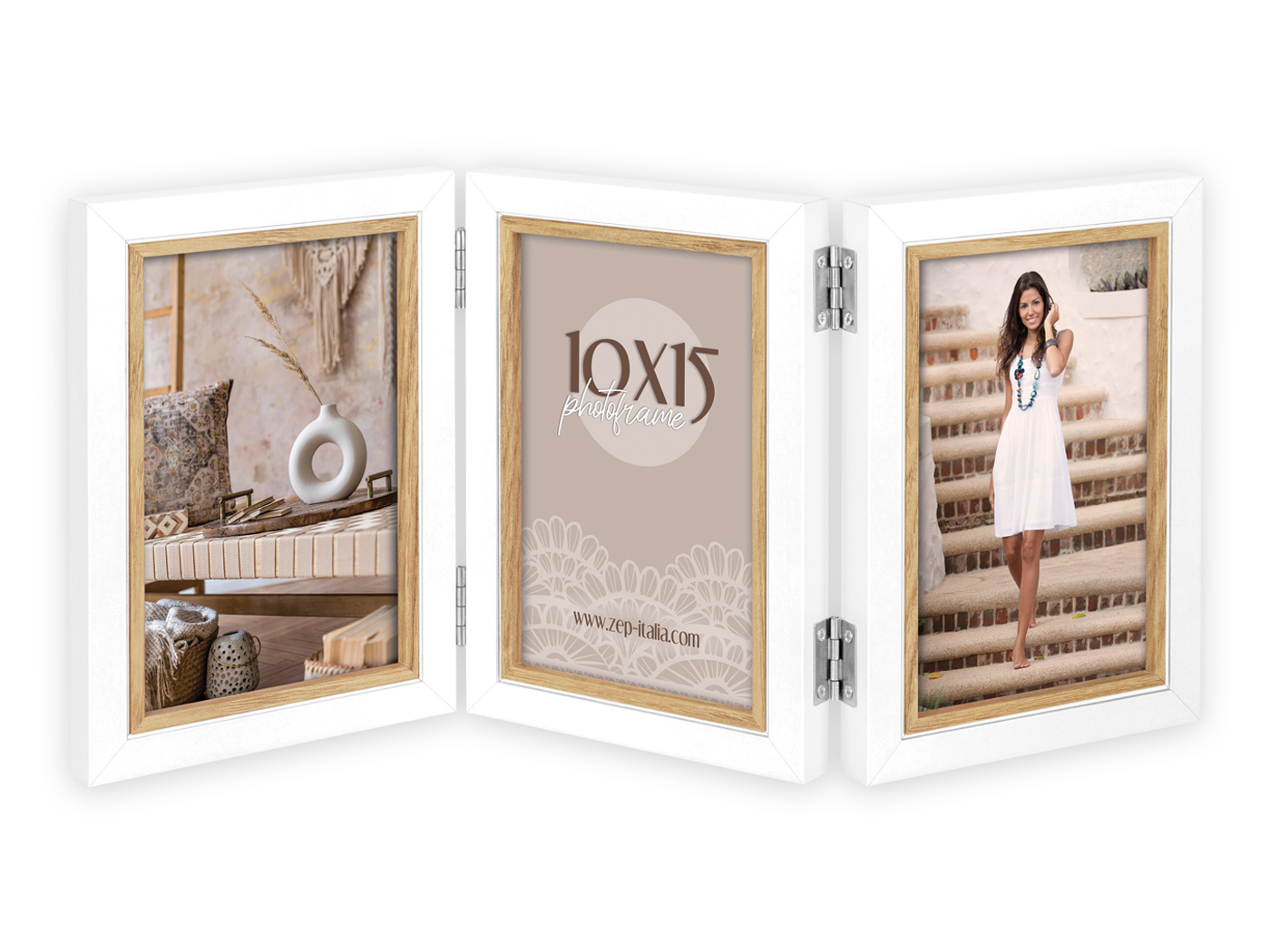 Fa dekor képkeretBerakható kép: 3db 10x15 cmKitámasztható asztali kivitel