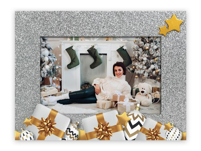 Karácsonyi témájú képkeret Berakható kép mérete: 10*15 cm Kitámasztható és falra is akasztható kivitel
